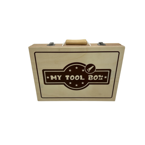 Complete houten gereedschapskist voor kinderen van 2 tot 8 jaar. Met schroevendraaier, hamer, zaag en meer! Verkrijgbaar bij ToysGarden speelgoedwinkel in Nijmegen.