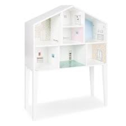 Pinolino Luxe wand poppenhuis in wit gelakt hout. Staand te gebruiken of aan de wand te hangen. Inclusief 5 behangvellen en meubelstickers. Afmetingen: 70×26×97 cm.