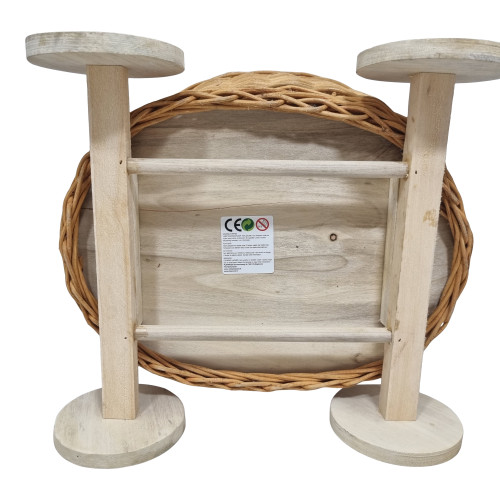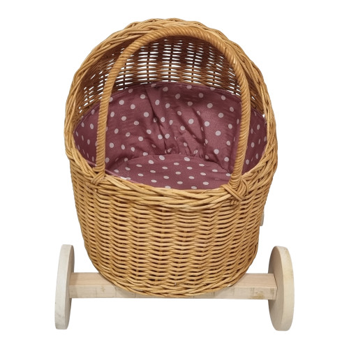 - Mini Poppenwagen Riet Inclusief Bekleding - Houten Wielen (31x27x39cm)