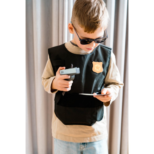 Omschrijving:Stoere houten politieset (8-delig) voor fantasierijk rollenspel. Inclusief handboeien, badge, pistool, zaklamp en vest. FSC-hout. Verkrijgbaar bij ToysGarden, speelgoedwinkel Nijmegen.
